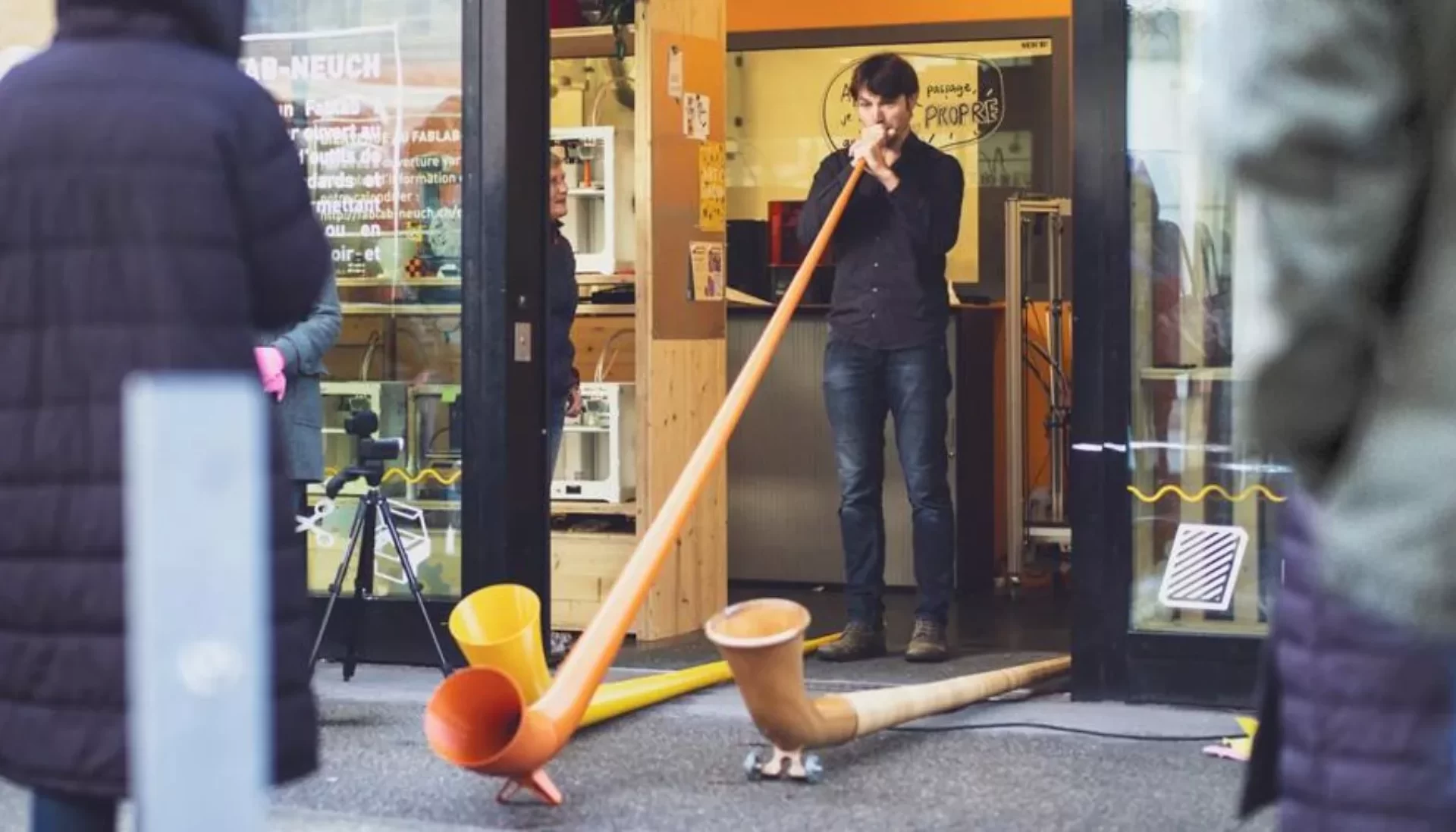 En 2023, le FabLab-Neuch de la Haute Ecole Arc développe une première version d’un cor des Alpes imprimé en 3D. Fabriqué à partir de plastique recyclé, ce cor low cost et open source – baptisé #CorDesLabs – surprend par sa sonorité… étonnamment très bonne ! De cette expérimentation est né un projet collaboratif qui réunit aujourd’hui musiciens professionnels et amateurs, ingénieurs et chercheur·euses, avec un objectif : explorer tout le potentiel de cet instrument revisité.